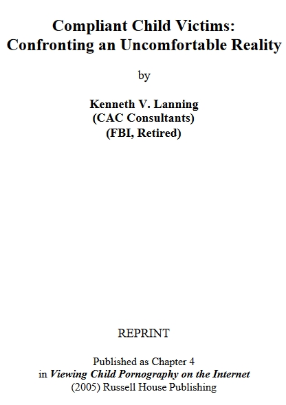 »Jedes der obigen Szenarien ist in verschiedenen Kombinationen mit anderen möglich. Ein Kind kann bei einigen sexuellen Akten kooperieren, und in anderen klar bedroht oder gezwungen werden. Alle sind potenzielle Verbrechen. Der Täter, das Opfer, die Gesellschaft oder der professionelle Intervenierende mögen verschieden wahrnehmen, was Compliance ausmacht. Ermittler und Staatsanwälte müssen immer versuchen zu bestimmen, was wirklich geschah, und nicht ihre vorgefassten Überzeugungen über sexuelle Viktimisierung von Kindern bestätigen.«