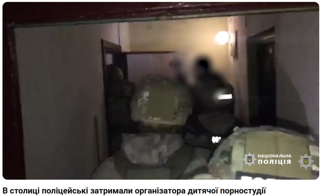 „Law enforcement officers from Ukraine, together with colleagues from the United Kingdom [!], have uncovered a child porn studio in Kyiv after a victim from the Poltava region filed a complaint.“